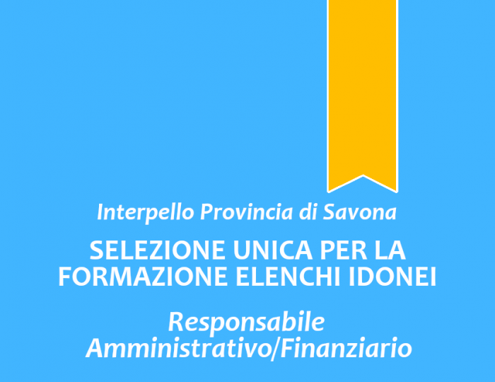 Interpello della Provincia di Savona - Elenco idonei "Responsabile Amministrativo/Finanziario"
